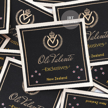 Etiquetas de etiqueta tejidas Lurex doradas con fondo negro elegante personalizado para pantalones cortos de ropa interior